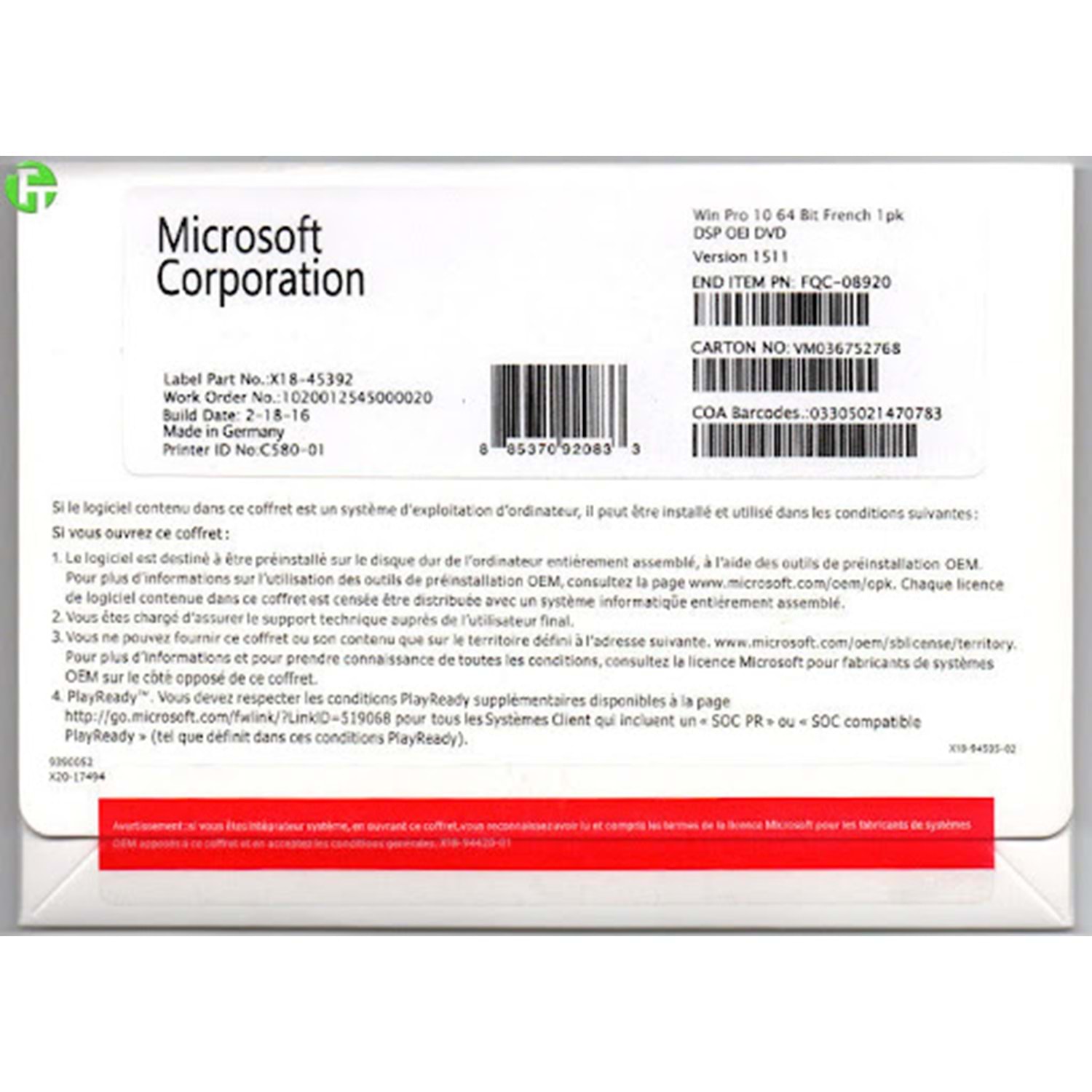 WIN PRO 10 64 BIT TURKISH 1 PK DSP OEI DVD
